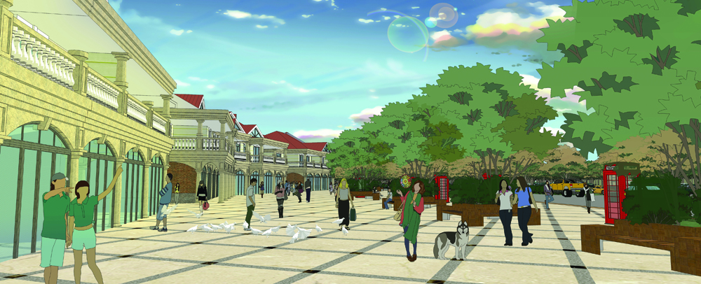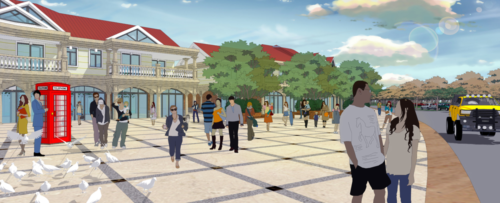 建筑設(shè)計主要采用簡歐風(fēng)格,遵循“尊重自然、綠色生態(tài)、建筑風(fēng)貌、景觀營造、可持續(xù)發(fā)展、低碳環(huán)保”的原則,布置在景區(qū)主干道右側(cè)和左側(cè)部分地塊,主要滿足大巴、中巴、小車、電瓶車以及回遷居民住宅。規(guī)劃區(qū)停車場設(shè)有四個車行主要出入口,其中兩個主要滿足停車場內(nèi)部車輛進(jìn)出,一個滿足電瓶車出入停車場,一個滿足回遷建筑出入。建筑前廣場主要考慮人流集散,后庭院主要突出景觀營造,通過對商業(yè)零售、回遷居住、景區(qū)服務(wù)、汽車維修等配套商業(yè)設(shè)施的建設(shè)滿足游客游覽需求。