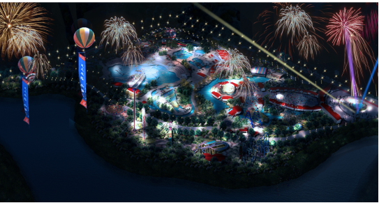 根據項目地的場地情況、開發現狀、發展思路等,確定功能分區為:綜合服務區——仙聚蓬萊、親子娛樂體驗區——八寶樂園、水上娛樂區——八仙戲水、陸地冒險區——龍宮歷險。