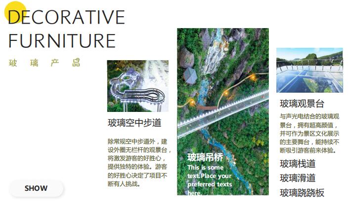 我司提供旅游景區(qū)游樂設(shè)備有:觀光索道、玻璃產(chǎn)品、趣味產(chǎn)品和低空旅游設(shè)備等。