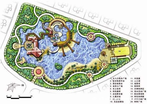 平面構圖:主要是將交通道路、綠化面積、小品位置,用平面圖示的形式,按比例準確地表現出來。