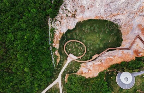 位于湯山國家旅游度假區內湯山山體南側,是一座廢棄的采石場礦坑,宕口遠看傷痕累累,走進卻氣勢恢宏——植物已經悄然的從破碎的石縫中慢慢長出,與冷峻的石壁搭配成漂亮的肌理;巨大的采石場的尺度讓人覺得不可觸、不可及,但是熱血沸騰。